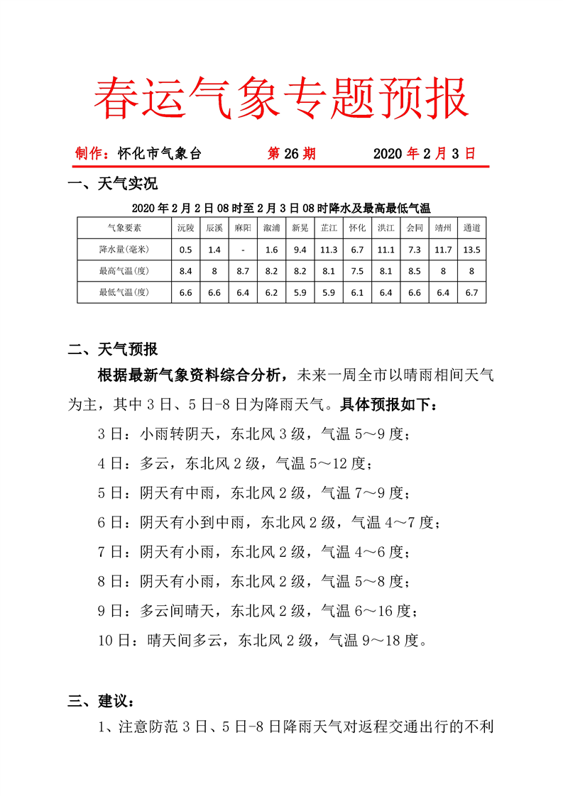 春運(yùn)氣象專題預(yù)報(bào) 第26期
