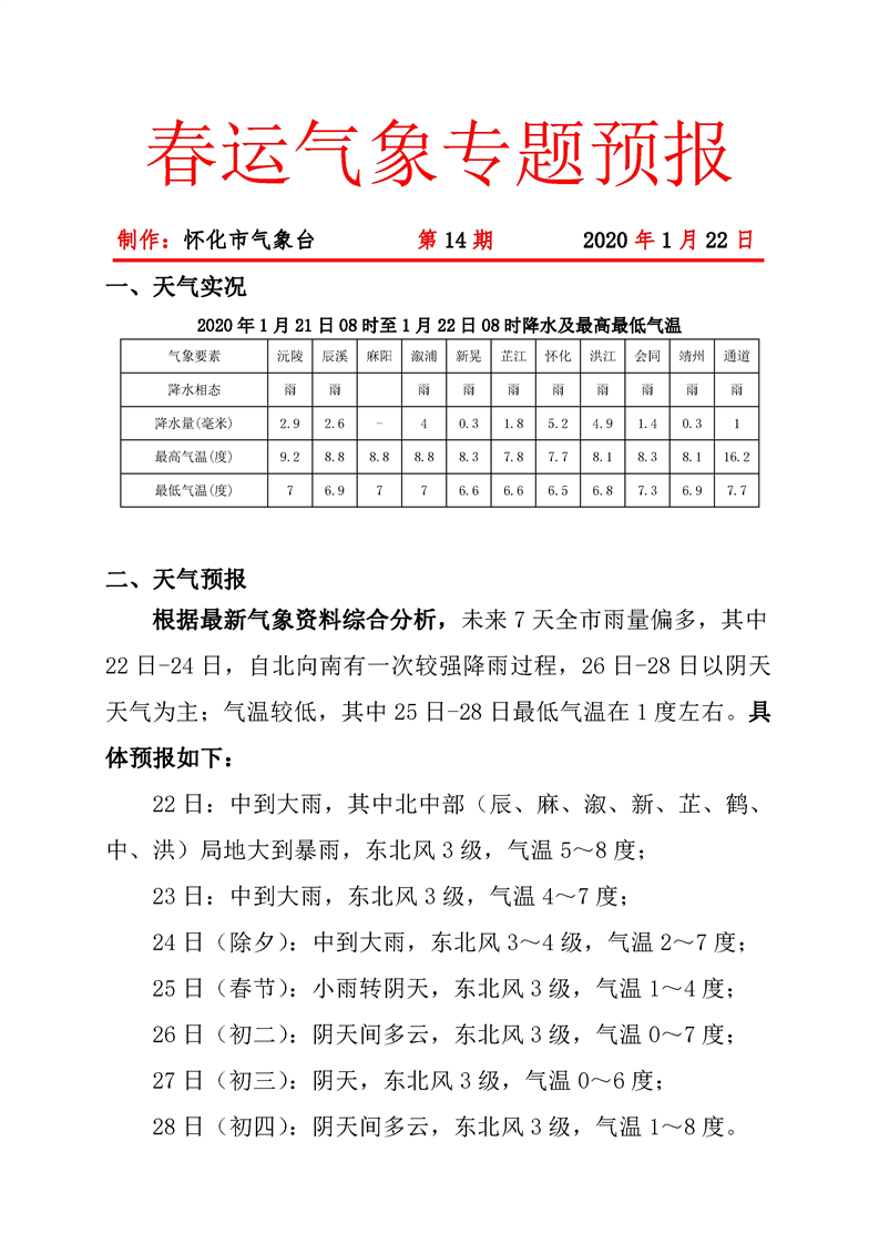 春運(yùn)氣象專(zhuān)題預(yù)報(bào) 第14期