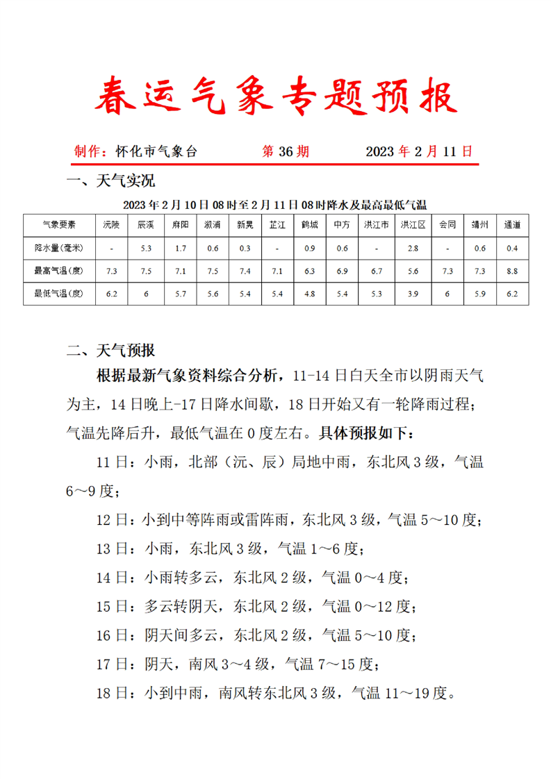 春運(yùn)氣象專(zhuān)題預(yù)報(bào) 第36期