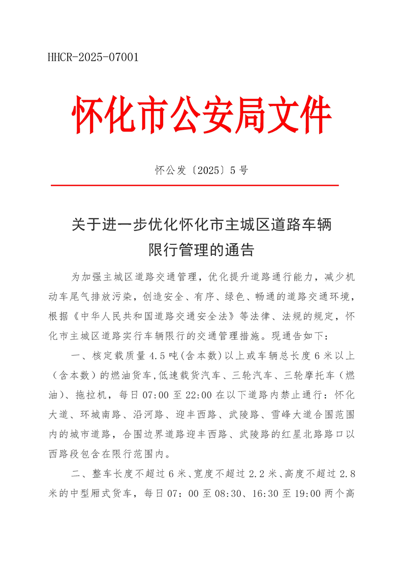 關(guān)于進(jìn)一步優(yōu)化懷化市主城區(qū)道路車輛限行管理的通告