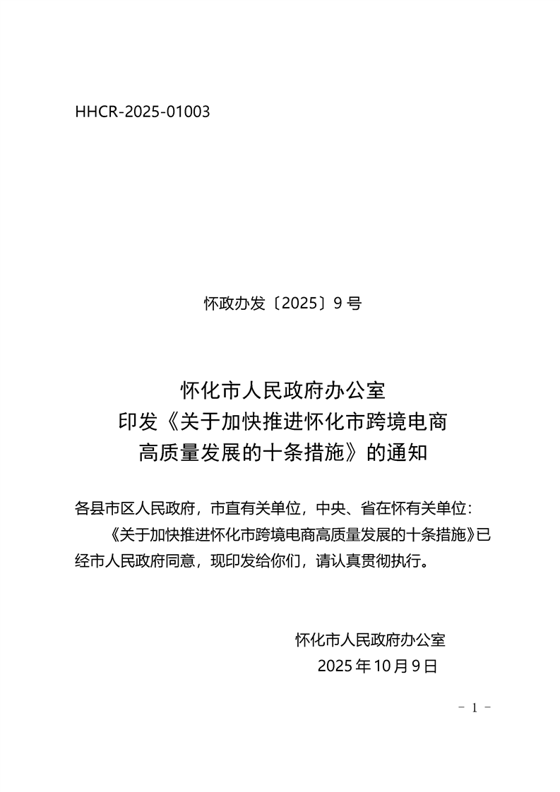 關(guān)于印發(fā)《關(guān)于加快推進(jìn)懷化市跨境電商高質(zhì)量發(fā)展的十條措施》的通知