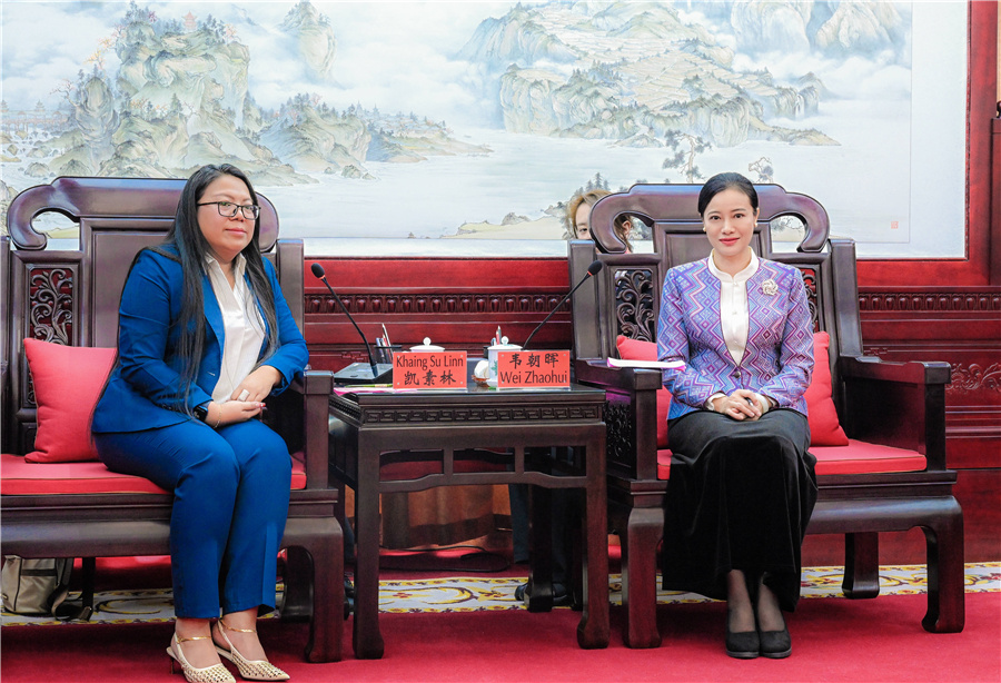 韋朝暉對凱素林一行的到來表示歡迎。她說,懷化是一個(gè)福氣滿滿的福地城市、充滿驚喜的寶藏城市、充滿活力的潛力城市。近年來,在湖南省委、省政府的堅(jiān)強(qiáng)領(lǐng)導(dǎo)下,懷化加快建設(shè)國際陸港,打造對接RCEP的戰(zhàn)略平臺(tái),不斷加深與RCEP成員國交流合作,已開通中老、中越、中緬等7條國際物流大通道,懷化國際陸港公海聯(lián)運(yùn)跨境卡車班列可達(dá)緬甸清水河口岸,2024年懷化赴緬甸合作開展了雜交水稻育種項(xiàng)目,雙方合作空間廣闊、潛力巨大。希望緬甸駐南寧總領(lǐng)事館介紹更多緬甸企業(yè)、商協(xié)會(huì)來懷開展經(jīng)貿(mào)交流合作,實(shí)現(xiàn)互惠共贏。