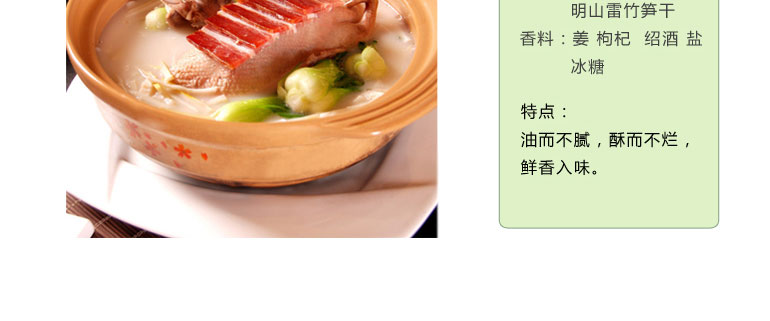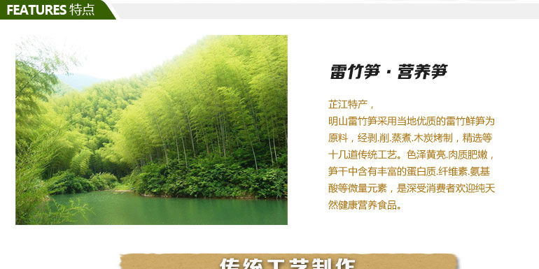 品牌: 明山筍 包裝方式: 袋裝 保質(zhì)期: 一年 凈重: 238g 生產(chǎn)許可證: QS4312 1601 0412,QS4312 1601 0412 產(chǎn)品標(biāo)準(zhǔn)號(hào): SB/T 10439-2007,SB/T 10439-2007 配料表: 雷竹鮮筍、食用精鹽,雷竹鮮筍、食用精鹽 儲(chǔ)藏方法: 冷藏或置于陰涼干燥處,冷藏或置于陰涼干燥處 食品添加劑: 無 產(chǎn)地: 湖南省 懷化市 芷江侗族自治縣 |