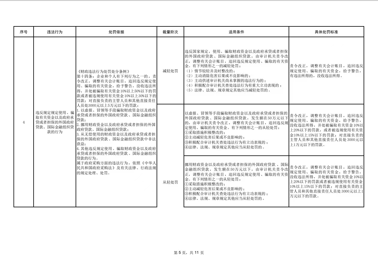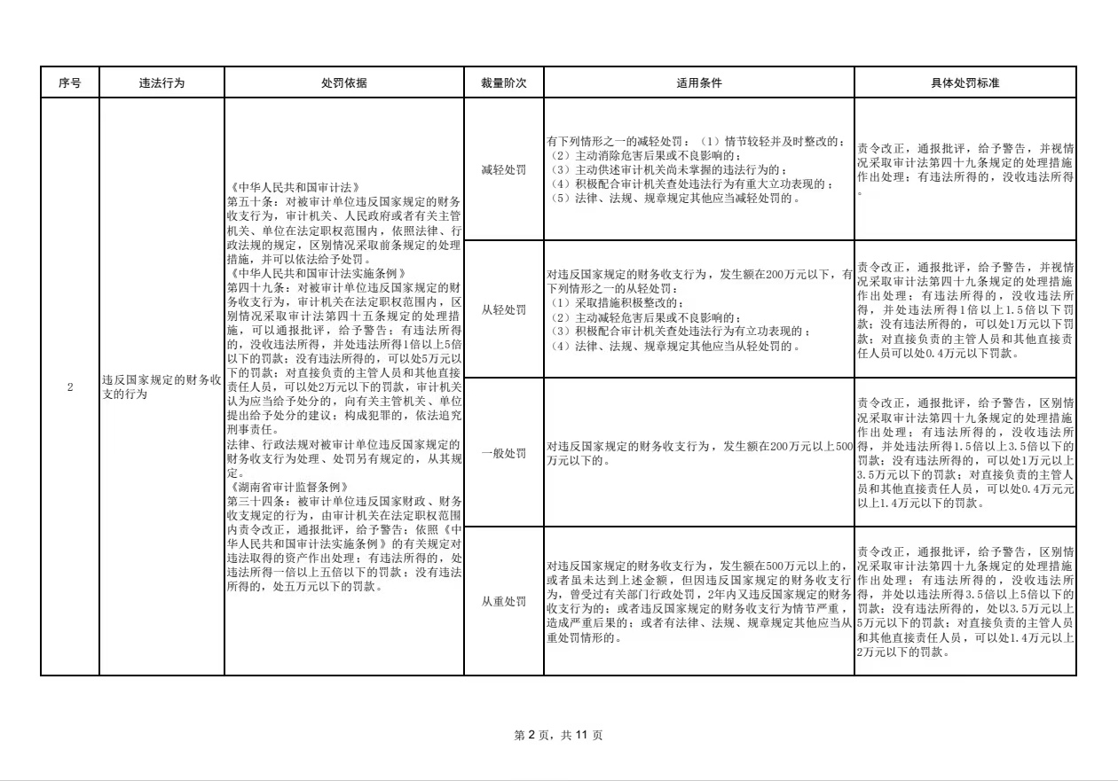 懷化市審計局行政處罰裁量基準(zhǔn)